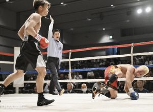 1R開始早々ダウンを奪い!3Rにさらにダウンを追加!